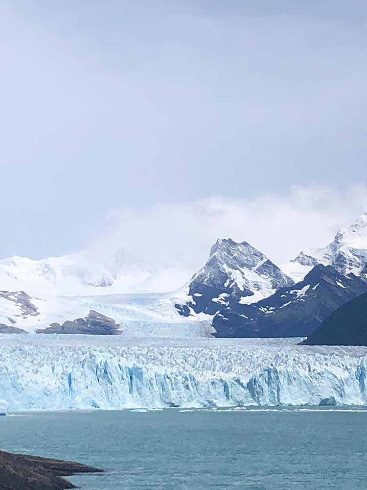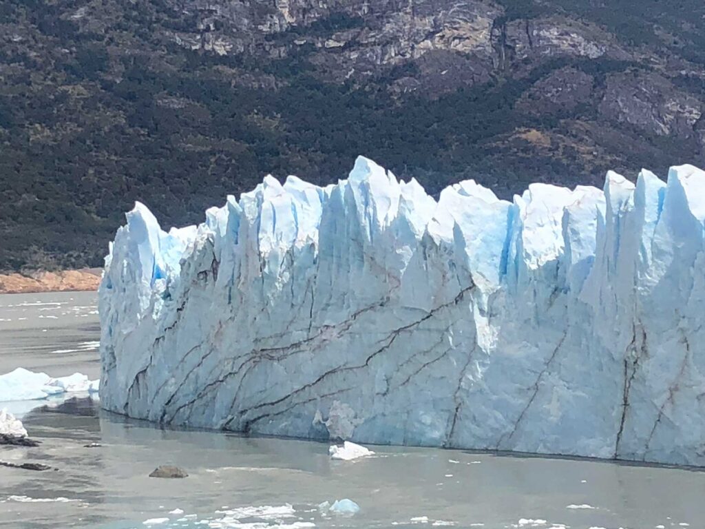 We take a bus to Perito Moreno Glacier, and it’s well worth it. Even the views from the bus are impressive! The glacier itself is huge, and it’s difficult to take in its enormity. It looks surreal, huge seracs standing upright on top of one another for miles onto the distance! We walk along boardwalks to various viewpoints, occasional claps of thunder indicating chunks of ice falling into the lake. It’s busy, and why not, it’s an amazing attraction to see. But even though we’re surrounded by people, the enormity of the glacier somehow makes me feel calm, like nature is so huge surely it will always be in charge? I stand at a viewpoint and stare in wonder. At one point a huge piece falls, creating an enormous sound as it crashes into the lake below. It was well worth the journey. Apparently it’s been receding since 2020, another sign of global warming. Being here and seeing the scale of these glaciers helps me understand more the effects of receding glaciers. I think it’s the fourth biggest reserve of fresh water in South America.
