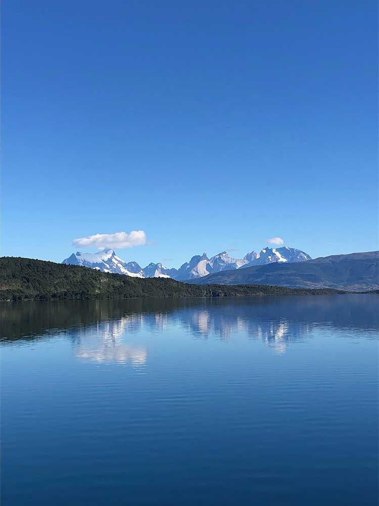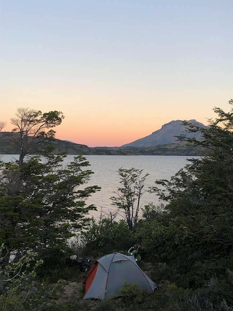 Having dinner sat out in the evening sun with these views will give me lasting memories. There’s barely a cloud in the sky and the wind has dropped. We wait patiently for sunset and then even longer for the sun to drop further casting its final rays of light on the jagged edges of the peaks. The morning is equally clear and beautiful, sunrise casting new colours on the opposite side of the mountains. We sit in the warmth of the sun, listening to the birds waking up. We have what might be our last swim in a lake in South America. It’s freezing cold but I find it briefly calm and refreshing, and the sun soon warms us up on the rocks afterwards.