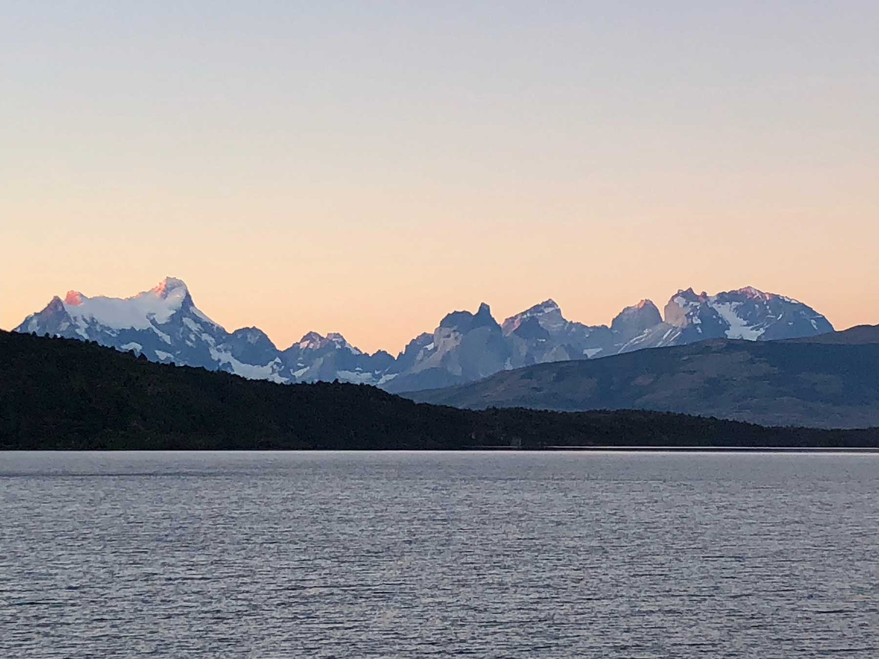 Having dinner sat out in the evening sun with these views will give me lasting memories. There’s barely a cloud in the sky and the wind has dropped. We wait patiently for sunset and then even longer for the sun to drop further casting its final rays of light on the jagged edges of the peaks. The morning is equally clear and beautiful, sunrise casting new colours on the opposite side of the mountains. We sit in the warmth of the sun, listening to the birds waking up. We have what might be our last swim in a lake in South America. It’s freezing cold but I find it briefly calm and refreshing, and the sun soon warms us up on the rocks afterwards.