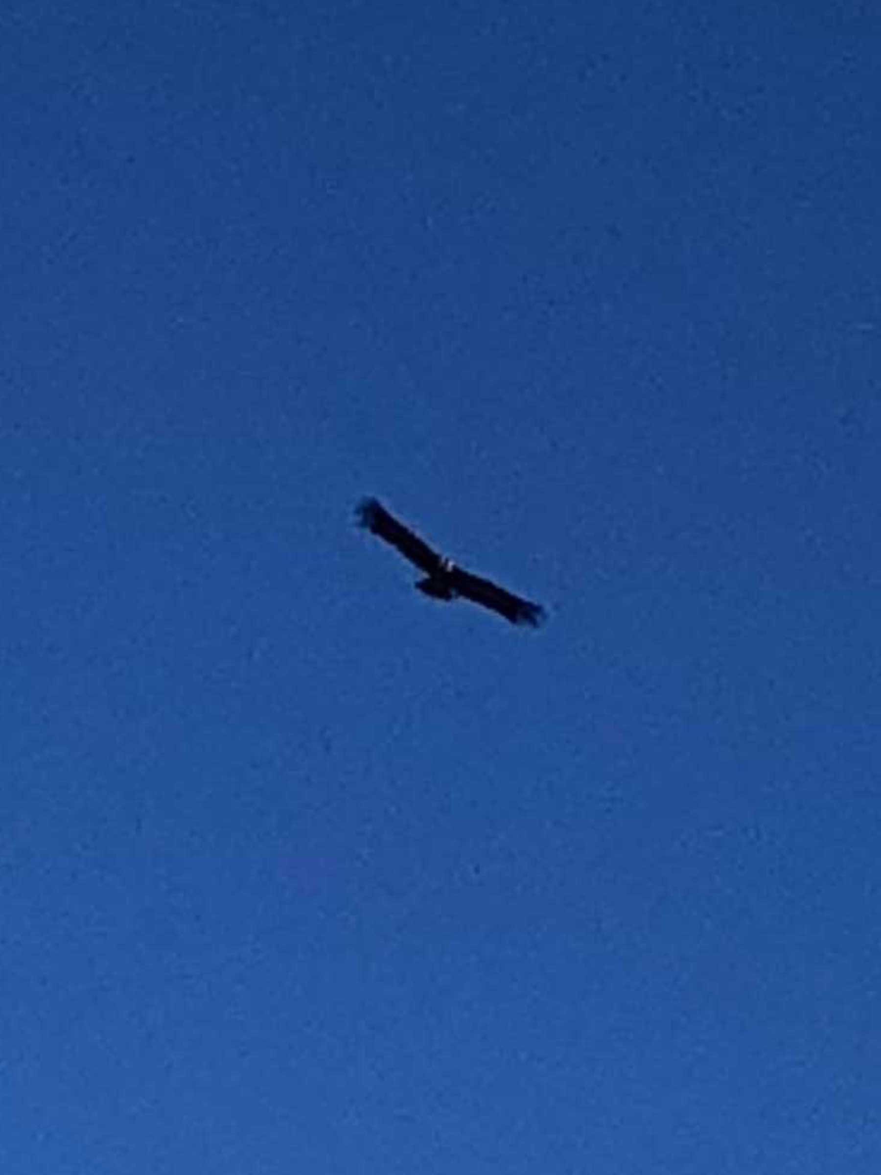 We decide to camp early, and hope that the wind direction has changed tomorrow. We find a track leading up to an old ruined building we can use for shelter from the wind. Chris has brought a bottle of wine from the supermarket earlier, along with some blue cheese and crackers, so we sit and relax in the sun. I look up and see two Condors soaring above. Even high above me I can see how huge their wing span is. Their white heads look around as they soar majestically above, it’s spectacular to watch.
